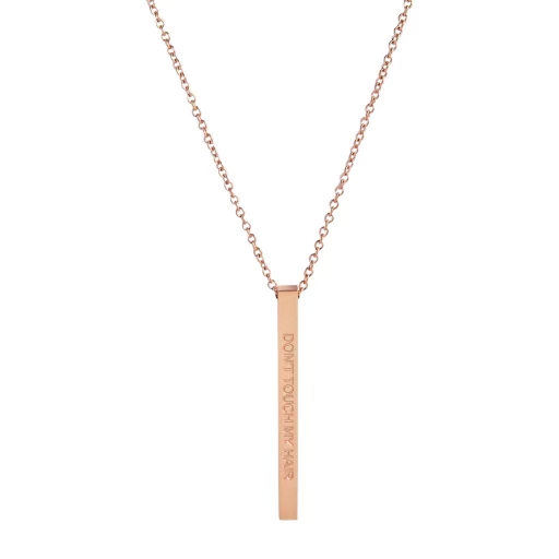 Our custom-made necklaces are made with high-grade 316 L stainless steel, which will not oxidize or turn black. The bar is 0.9 inches (22mm) in diameter, with an 18-inch (48cm) chain and a 4-inch (10cm) extension.